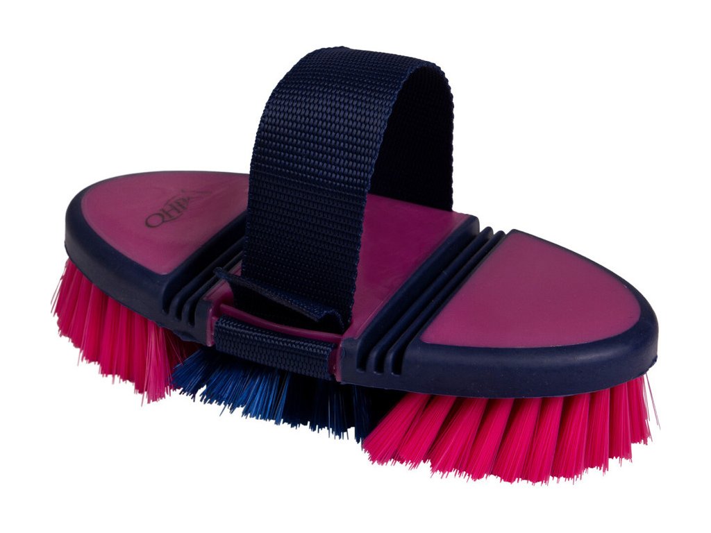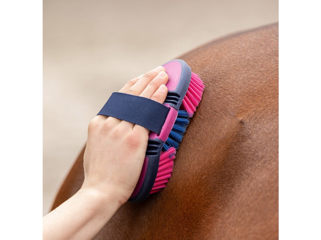 Elastyczna szczotka do ciała wykonana z wysokiej jakości tworzywa sztucznego z syntetycznym włosiem. Dzięki swojej elastyczności szczotka łatwo dopasowuje się do ciała konia, umożliwiając łatwą i wygodną pielęgnację sierści.