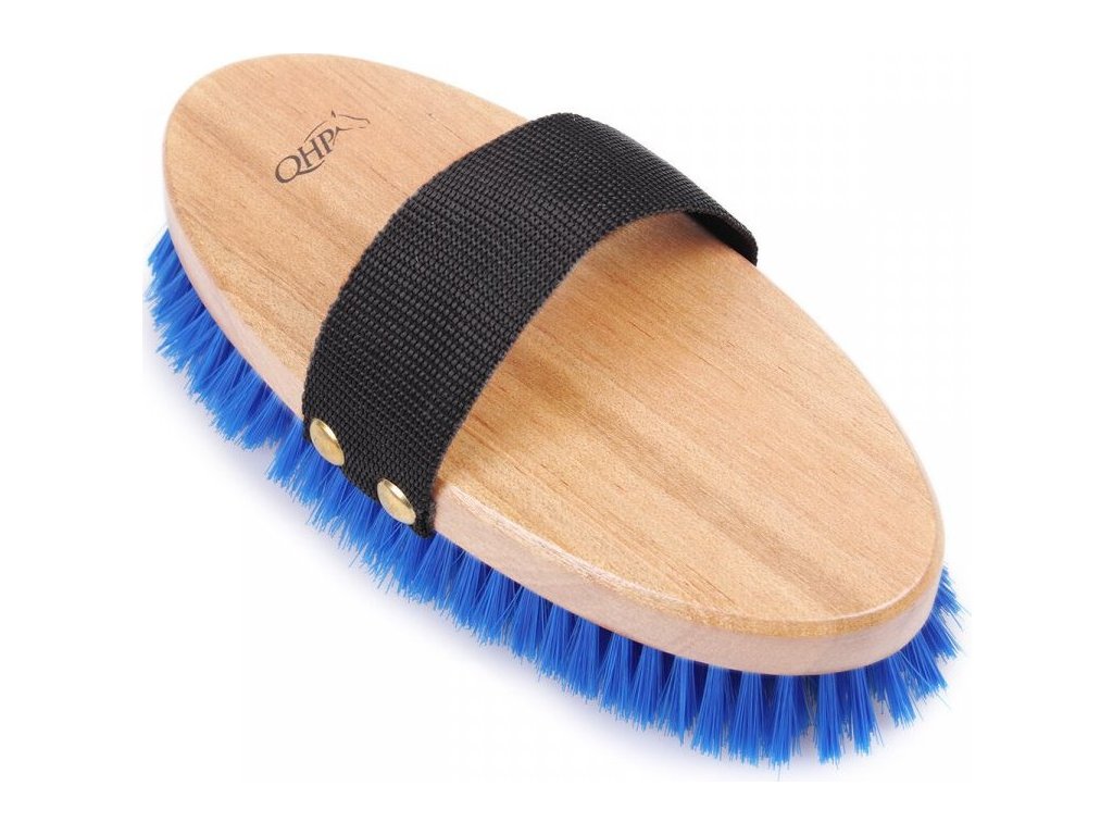 Wysokiej jakości szczotka z miękkim włosiem, która usuwa brud z sierści konia. Wyposażona jest w drewnianą rączkę i nylonowy pasek dla wygodnego trzymania. Dostępny w wielu opcjach kolorystycznych.
