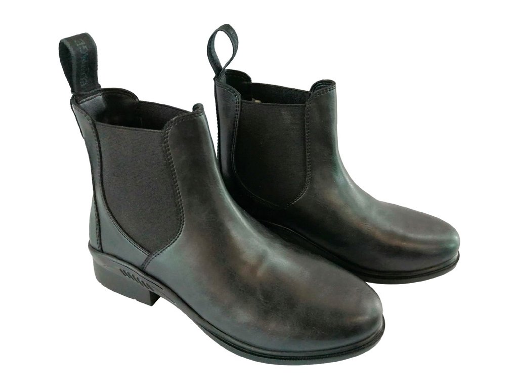 Klasyczne, proste buty jeździeckie typu jodhpur wykonane z wegańskiej skóry firmy Eguipage. Łatwe zakładanie i zdejmowanie zapewnia tylna pętelka i boczne elastyczne wstawki, które zapewniają również odpowiednie dopasowanie wokół kostki. Buty są wyposażone w wysoki obcas. Dostępna w wielu rozmiarach.
