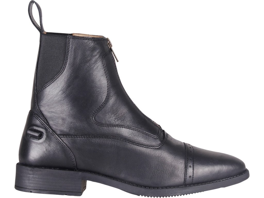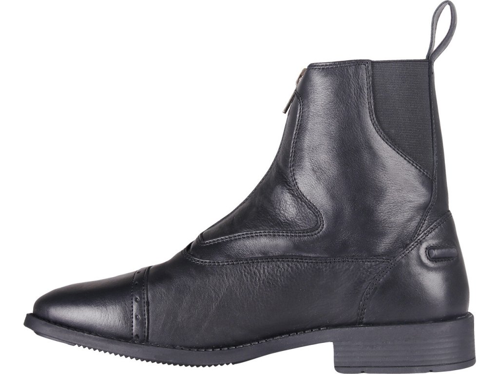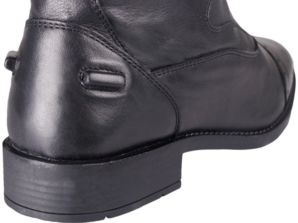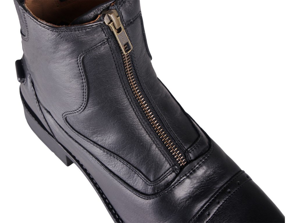 Wyjątkowo wygodne sztyblety jeździeckie wykonane z wysokiej jakości, delikatnej skóry. Z wyjątkowo miękkiej skóry w okolicy zamka błyskawicznego, co zapewnia maksymalny komfort noszenia. Zapięcie na zamek błyskawiczny z przodu, elastyczne wstawki po bokach i materiałowa pętelka z tyłu buta zapewniają szybkie i łatwe zakładanie. W kolorze czarnym.
