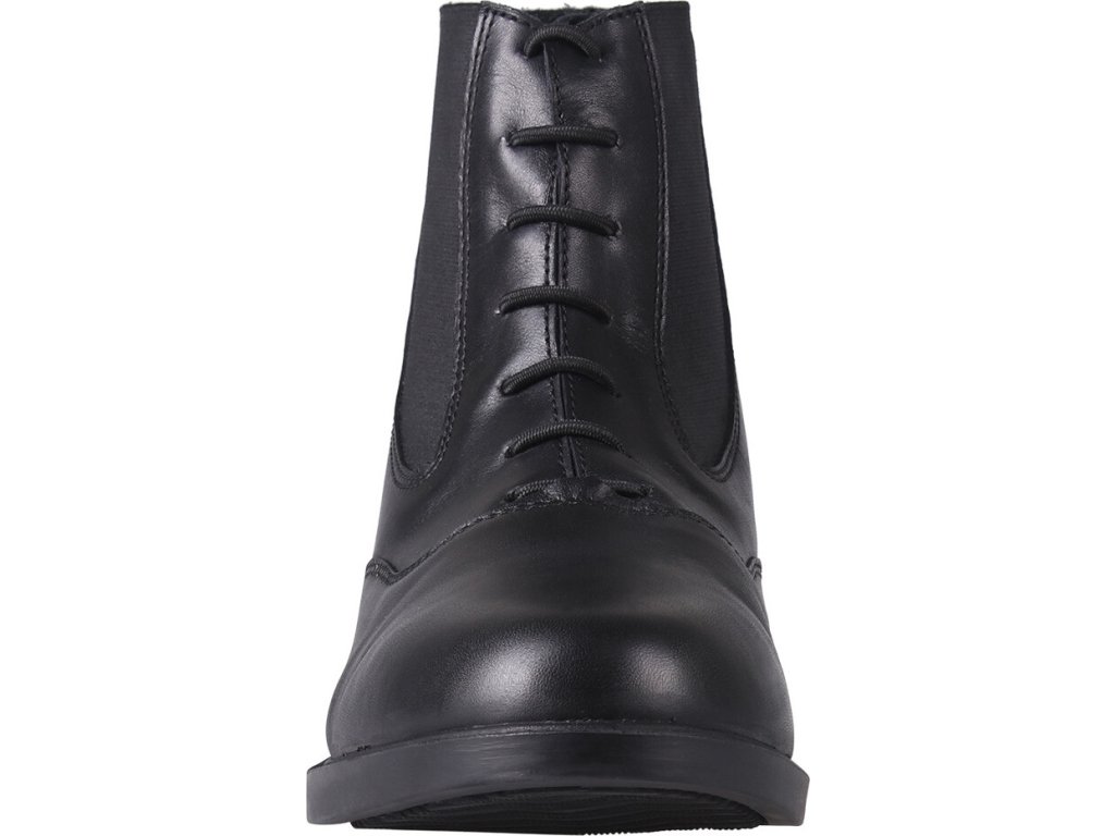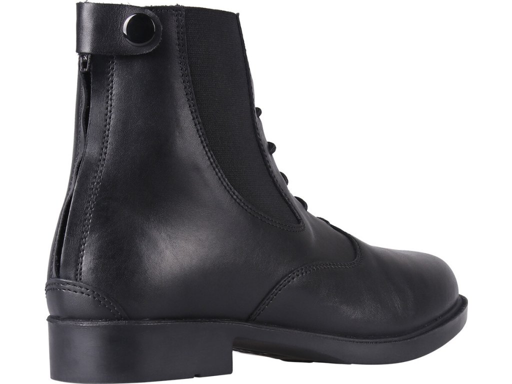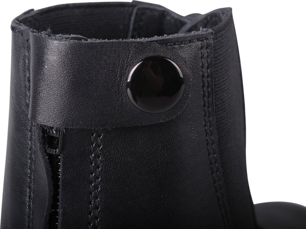 Wysokiej jakości buty wykonane z wytrzymałej skóry. Wyposażone są w sznurowanie z przodu i praktyczny zamek błyskawiczny z tyłu, co ułatwia ich zakładanie. Wyposażone są w guzik przy zamku błyskawicznym i elastyczne wstawki, które zapewniają maksymalny komfort. Dostępne są również w rozmiarach dla dzieci.