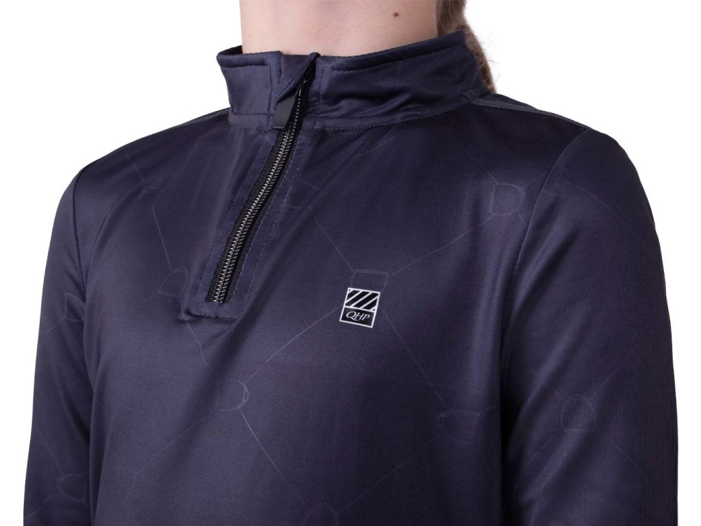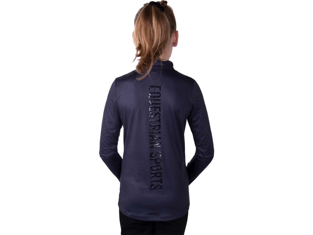 Wysokiej jakości T-shirt idealny do treningu i pracy w stajni. Wykonany z miękkiego i elastycznego materiału, który zapewnia maksymalny komfort. Posiada długie rękawy i krótki zamek błyskawiczny przy szyi. Ozdobiony nadrukiem i błyszczącym napisem "Equestrian sports" na plecach, co nadaje T-shirtowi sportowy wygląd.