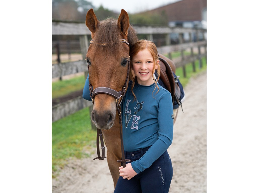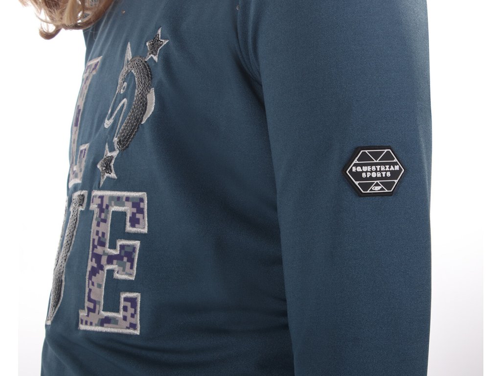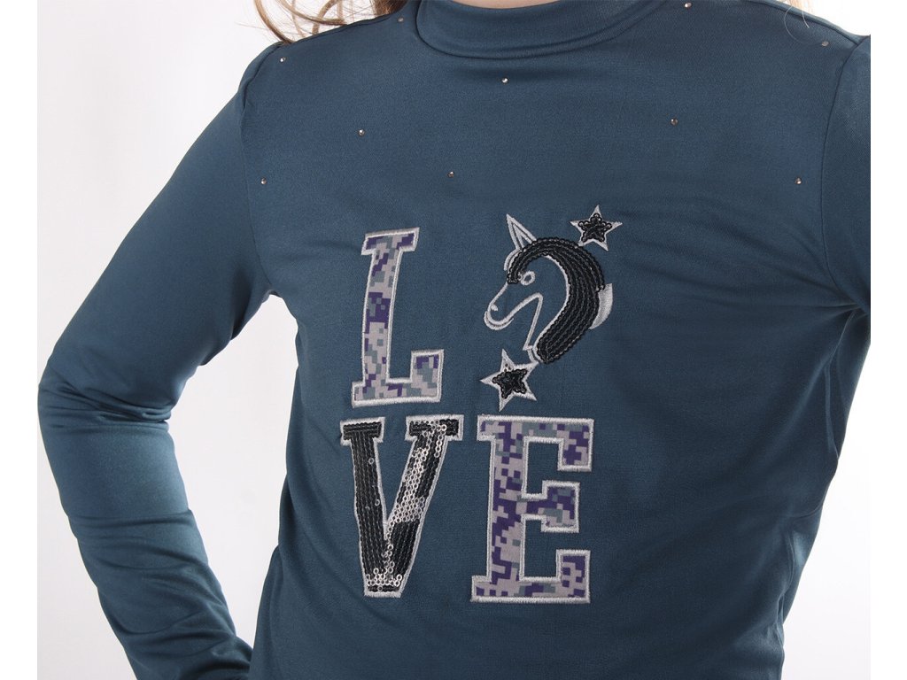 Bardzo wysokiej jakości dziecięca koszulka odpowiednia do noszenia przez cały rok. Wykonana z szybkoschnącej i lekko elastycznej tkaniny dla dodatkowego komfortu i maksymalnej swobody ruchów. Ozdobiona błyszczącymi cekinami i kamieniami z przodu. Koszulka jest również dostępna w kolorze różowym.
