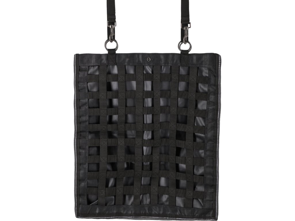 Wysokiej jakości torba na siano o pojemności 4-6 kg, z oczkami o rozmiarze 4 cm. Wykonana jest z wysokiej jakości tkaniny o wytrzymałości 600 D. Materiał jest wyjątkowo trwały i odporny. Torba może być zawieszona za pomocą czterech pierścieni i regulowanych pasków. Można ją łatwo napełnić od góry, która posiada również zapięcie na rzep. Wymiary: 63,5 x 53 x 18 cm.