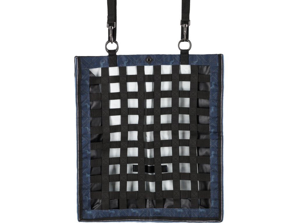 Wysokiej jakości torba na siano o pojemności 4-6 kg, z oczkami o rozmiarze 4 cm. Wykonana jest z wysokiej jakości tkaniny o wytrzymałości 600 D. Materiał jest wyjątkowo trwały i odporny. Torba może być zawieszona za pomocą czterech pierścieni i regulowanych pasków. Można ją łatwo napełnić od góry, która posiada również zapięcie na rzep. Wymiary: 63,5 x 53 x 18 cm.