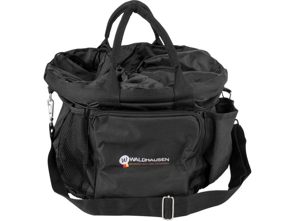 Praktyczna torba do pielęgnacji z dużą przestrzenią do przechowywania. Główna kieszeń zamykana jest na sznurek. Wewnątrz dużej kieszeni znajduje się kolejna mniejsza kieszeń, odpowiednia na przykład do przechowywania telefonu. Przednia kieszeń, odpowiednia na różne przedmioty, ma zapięcie na zamek błyskawiczny i jest ozdobiona logo Waldhausen. Torba posiada również kieszeń z siatki z boku i cztery otwarte kieszenie. Wyposażona w odpinany i regulowany pasek na ramię. Torba nadaje się nie tylko do stajni, ale także na zawody.