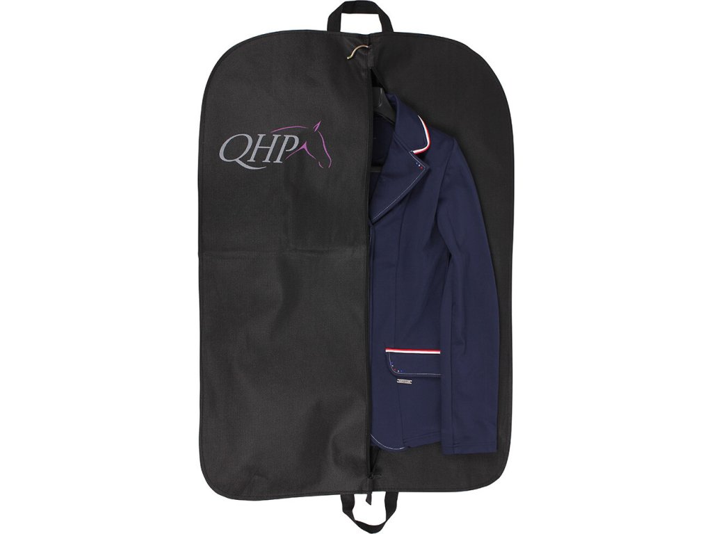 Wyjątkowo praktyczna torba na odzież, która pozwala na bezpieczne przechowywanie sprzętu jeździeckiego. Chroni przed zanieczyszczeniami. Z pętlą na pasek na ramię i dwoma uchwytami ułatwiającymi składanie i przenoszenie pokrowca ze sobą. Ozdobione logo QHP.
