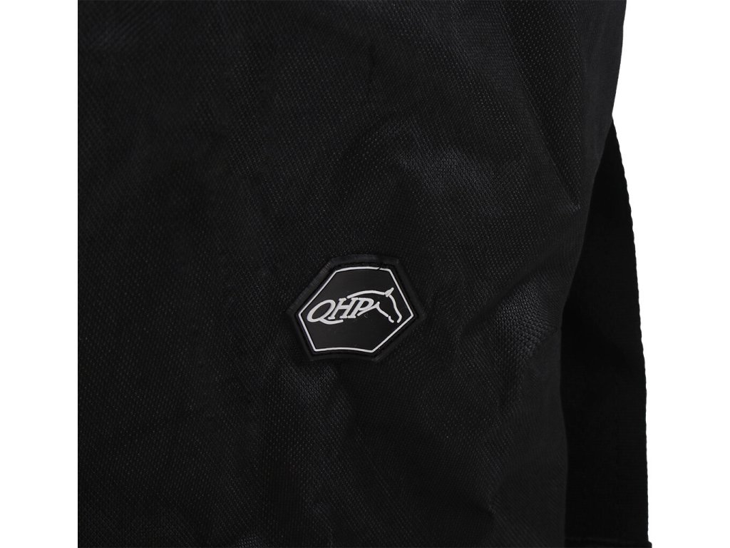 Praktyczna torba stajenna, która służy jako miejsce do przechowywania wszystkich niezbędnych rzeczy. Wyposażona jest w dwie stałe klamry z regulacją rozmiaru. Torba jest łatwa do zawieszenia na boksie za pomocą dwóch pętelek z tyłu. Wyposażona jest również w praktyczny uchwyt. Ozdobiona jest delikatną lamówką w kontrastowym kolorze i małym emblematem QHP. Wymiary: 75 x 55 x 30 cm.