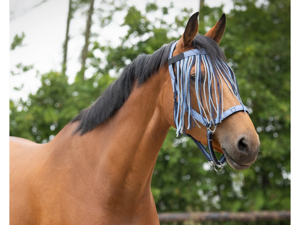 Frędzle przeciw owadom mocowane do kantara za pomocą rzepu. Wyposażone w miękkie podszycie dla maksymalnego komfortu. Ozdobione subtelnym wzorem i kolorowymi frędzlami. Dostępny w wielu opcjach kolorystycznych.