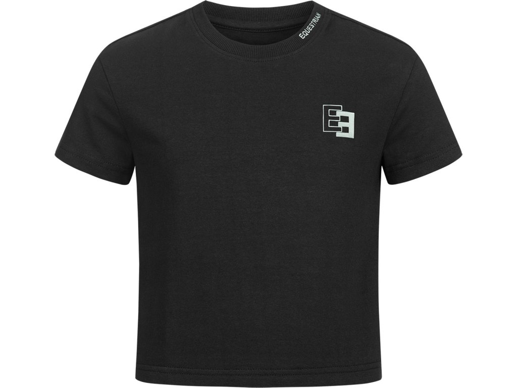 Stylowy dziecięcy T-shirt z krótkim rękawem o luźniejszym kroju to idealny wybór na co dzień. Krótki fason dodaje nowoczesnego wyglądu. T-shirt jest wykonany z komfortowego bawełnianego materiału z domieszką elastanu. Dzięki temu połączeniu jest przewiewny i elastyczny. Ozdobiony prążkowanym kołnierzykiem z haftowanym napisem Equestrian.