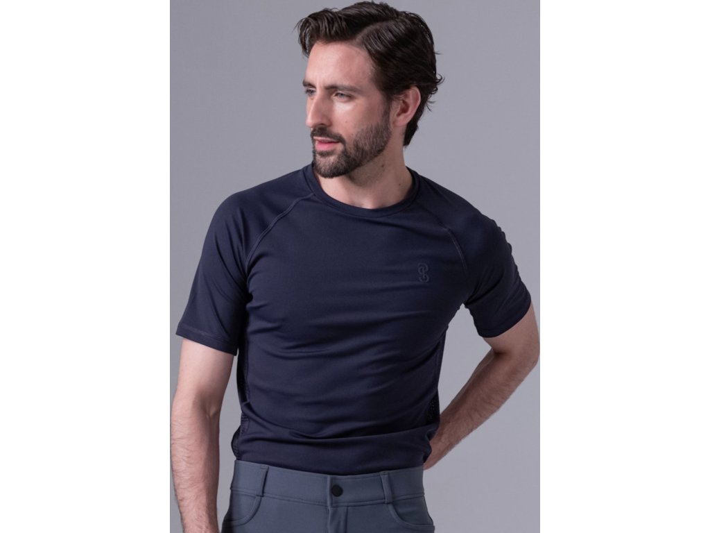 Lekka, funkcjonalna koszulka z krótkim rękawem i okrągłym dekoltem dla mężczyzn. Koszulka wykonana jest z lekkiego materiału o półmatowym wykończeniu, co nadaje jej elegancki i nowoczesny wygląd. Panele wentylacyjne po bokach i z tyłu zapewniają doskonałą wentylację i utrzymują komfort termiczny nawet podczas długich przejażdżek. Z przodu i z tyłu znajduje się silikonowy nadruk z logo, dodający subtelnego, ale stylowego charakteru. Posiada ochronę UV, która chroni skórę przed szkodliwym działaniem promieni słonecznych.