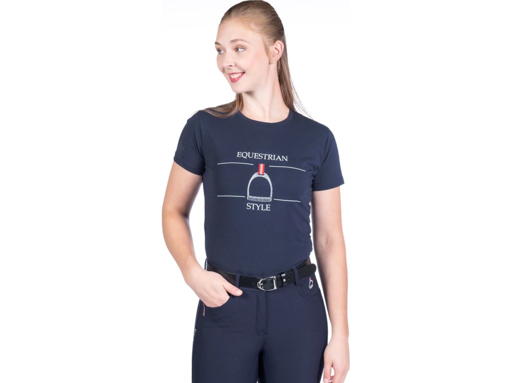 Ten wygodny T-shirt bawełniany to idealny wybór na co dzień. Ma dopasowany krój i okrągły dekolt. Koszulka jest również lekko elastyczna dzięki składowi materiału i zapewnia wysoki komfort noszenia. Zaprojektowana w pięknym stylu z nadrukiem "Equine Sports" i brokatowymi detalami. Dostępny w wielu rozmiarach i kolorach. Idealnie pasuje do innych produktów z kolekcji Equine Sports.