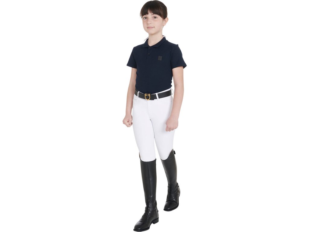 Dziecięca koszulka polo Equestro z krótkim rękawem, wykonana z elastycznej, wysokiej jakości tkaniny. Z kołnierzykiem i zapinana na dwa guziki. Ozdobiona naszywką z logo Equestro na piersi. Dostępna również w kolorze białym. Dostępna w rozmiarach 8, 10, 12 i 14 lat.
