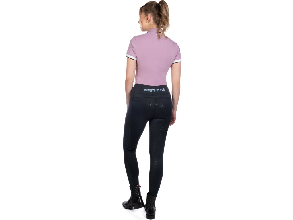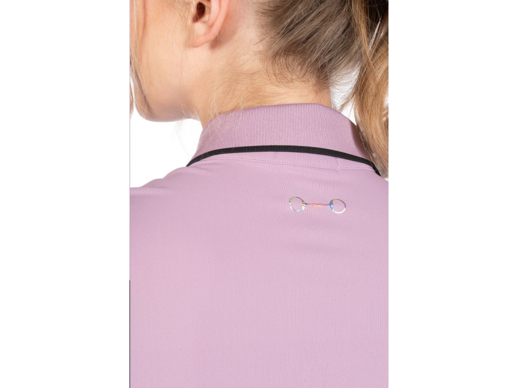 Wysokiej jakości koszulka polo wykonana z elastycznego materiału. Zapinana na cztery guziki, z kołnierzykiem. Ozdobiona napisem "Equestrian Sports Style" na piersi i nadrukiem wędzidła na plecach pod kołnierzykiem. Można prać w pralce w temperaturze 30°C. Dostępne w dwóch kolorach.