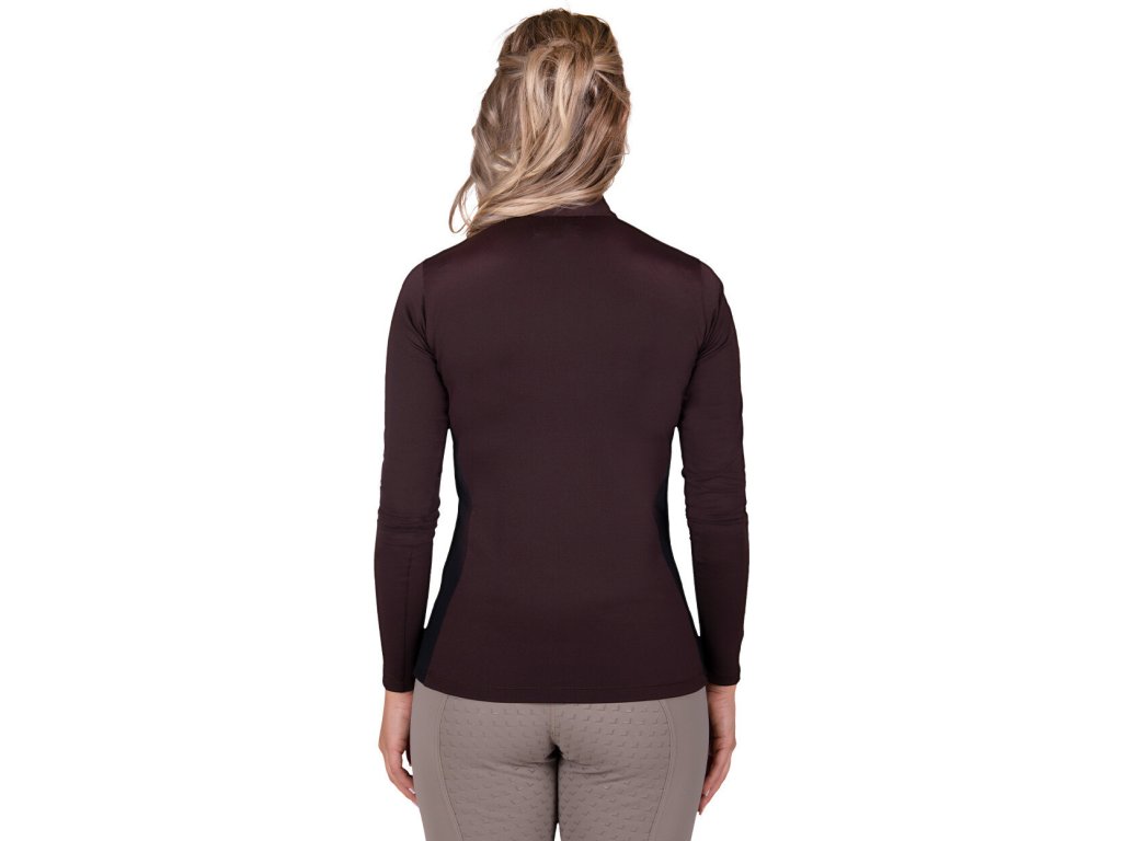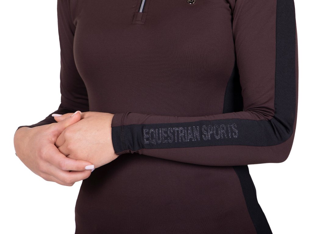 Wysokiej jakości damska koszulka z ciepłą podszewką, która zapewni Ci ciepło w chłodne zimowe dni. Wykonana jest z wysoce elastycznego i oddychającego materiału, który zapewnia maksymalny komfort. Wyposażona jest w długie rękawy, wyższy kołnierz i krótki zamek błyskawiczny przy szyi. Rękawy ozdobione są czarnym paskiem i srebrnym napisem "Equestrian Sports". Koszulka jest również dostępna w rozmiarach dziecięcych i idealnie pasuje do innych produktów z kolekcji Julin. Część kolekcji jesień/zima 2023/2024.