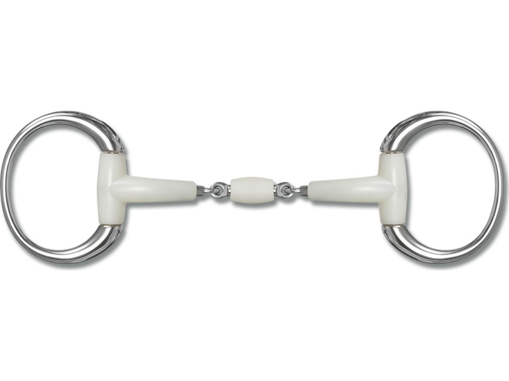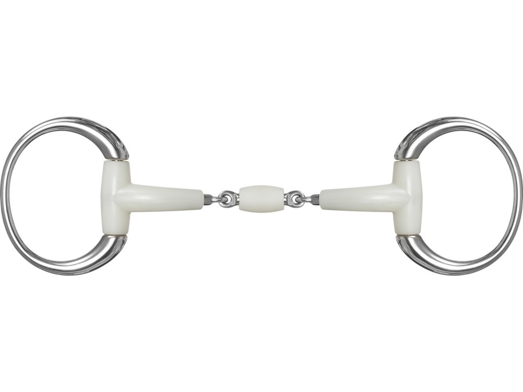 Ergonomicznie ukształtowane, podwójnie łamane wędzidło typu eggbutt z obrotową rolką pośrodku. Wykonane z wysokiej jakości tworzywa termoplastycznego o smaku jabłkowym. Te wędzidła są bardzo dobrze akceptowane i pobudzają żucie. Kółka wykonane są ze stali nierdzewnej, podobnie jak wewnętrzny rdzeń wędzidła. Grubość 16 mm, kółka Ø 7 cm. Upewnij się, że wędzidło jest prawidłowo umieszczone, a ogłowie odpowiednio dopasowane, aby zapobiec gryzieniu.