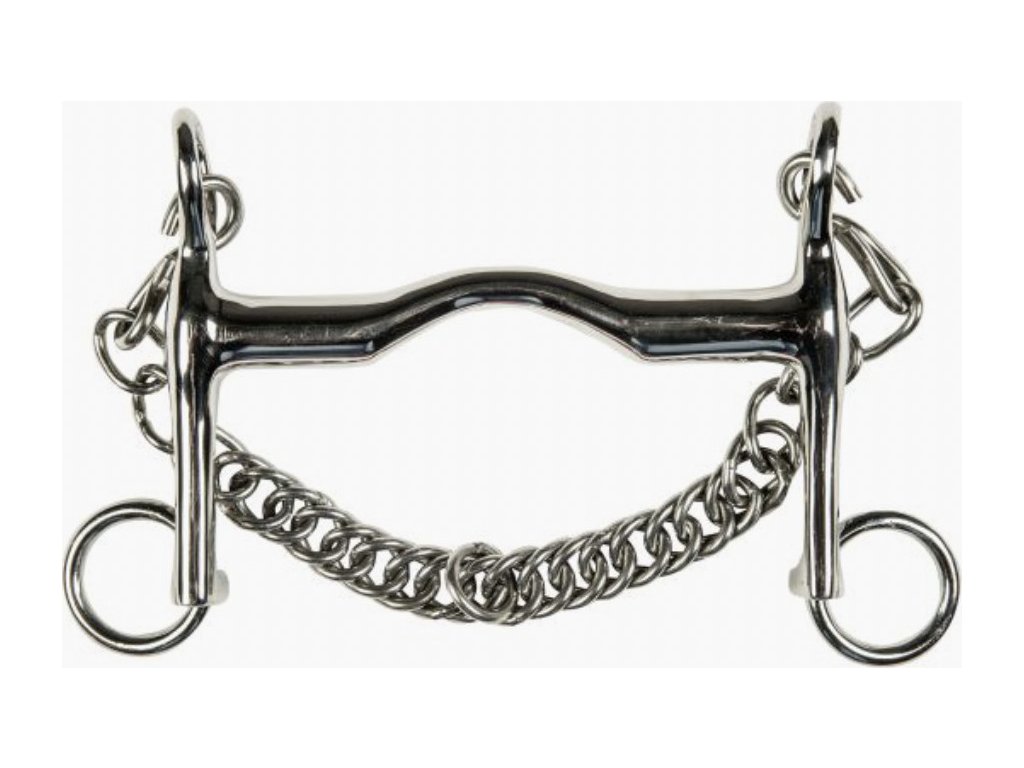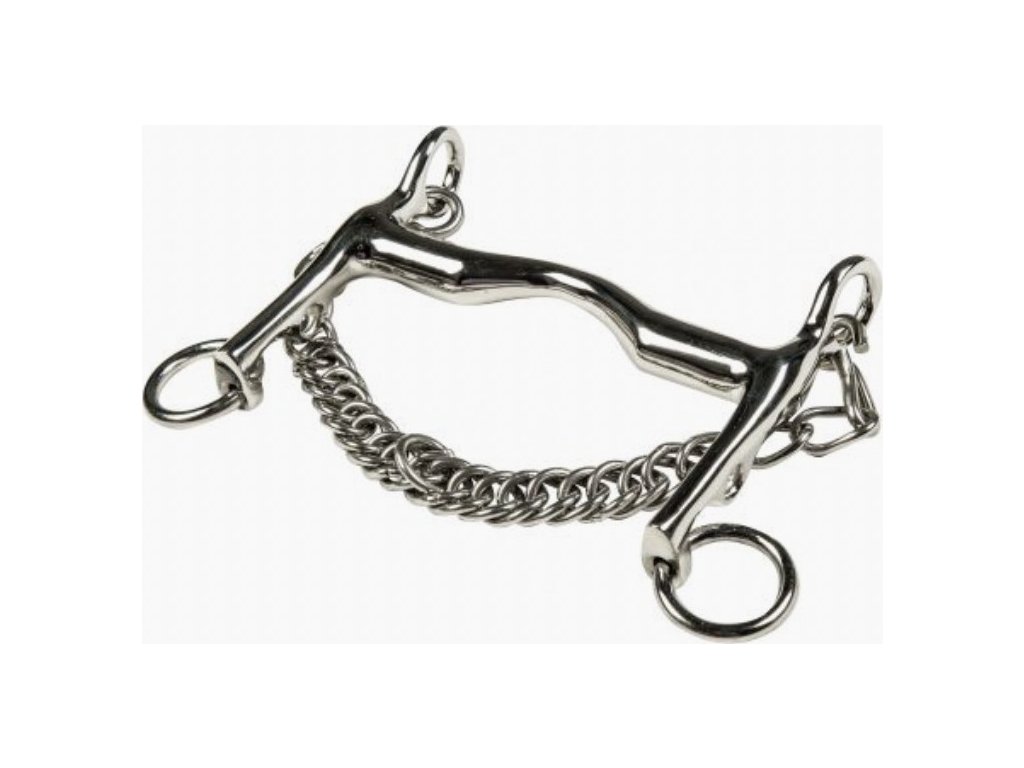 Ujeżdżeniowe niełamane wędzidło z zakrzywionym ścięgierzem od HKM. Długość czanki wynosi 7 cm, a grubość ścięgierza 16 mm. Wykonane ze stali nierdzewnej. Dostępna w wielu rozmiarach.