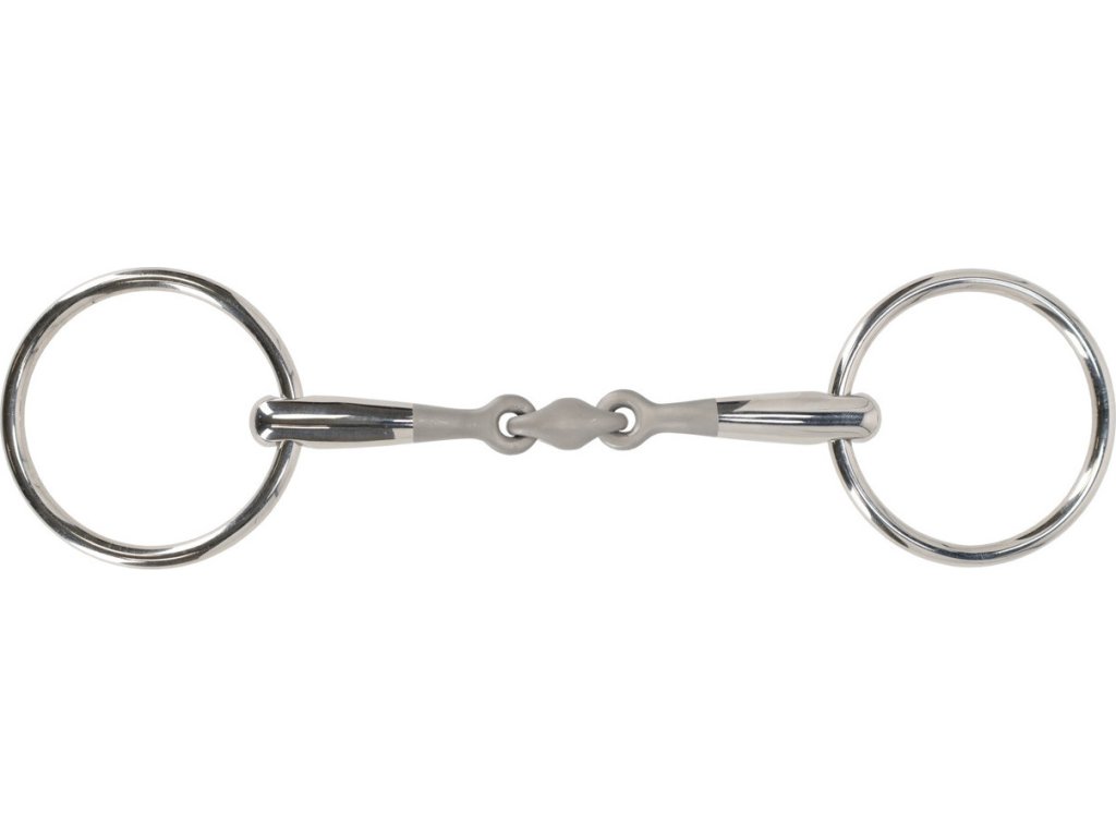 Delikatne wędzidło podwójnie łamane, które większość koni dobrze akceptuje. Podwójnie łamany ścięgierz rozprowadza nacisk na język. Ustnik ma wykończenie piaskowane, które jest przyjemne dla konia i zachęca do ślinienia.