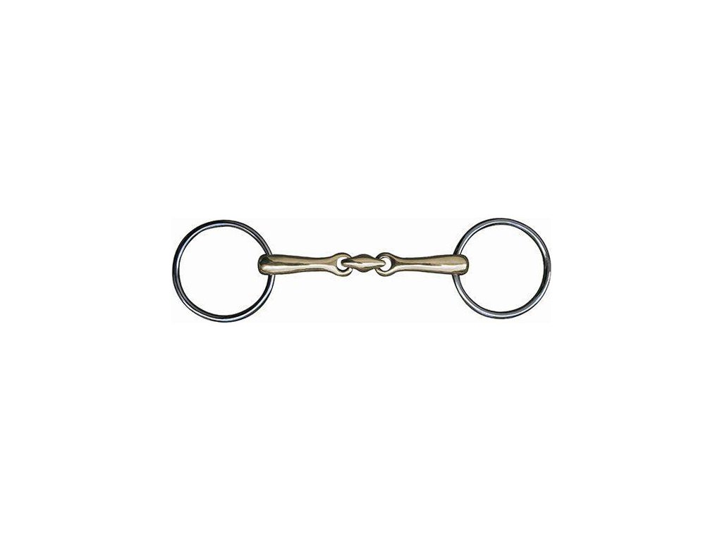 Wędzidło podwójnie łamane z nierdzewnymi kółkami i ścięgierzem z Argentanu. Argentan to trwały stop miedzi, który wspomaga żucie i ślinienie. Dzięki temu koń lepiej współpracuje podczas pracy, a samo wędzidło jest lepiej akceptowane. Grubość 14 mm.
