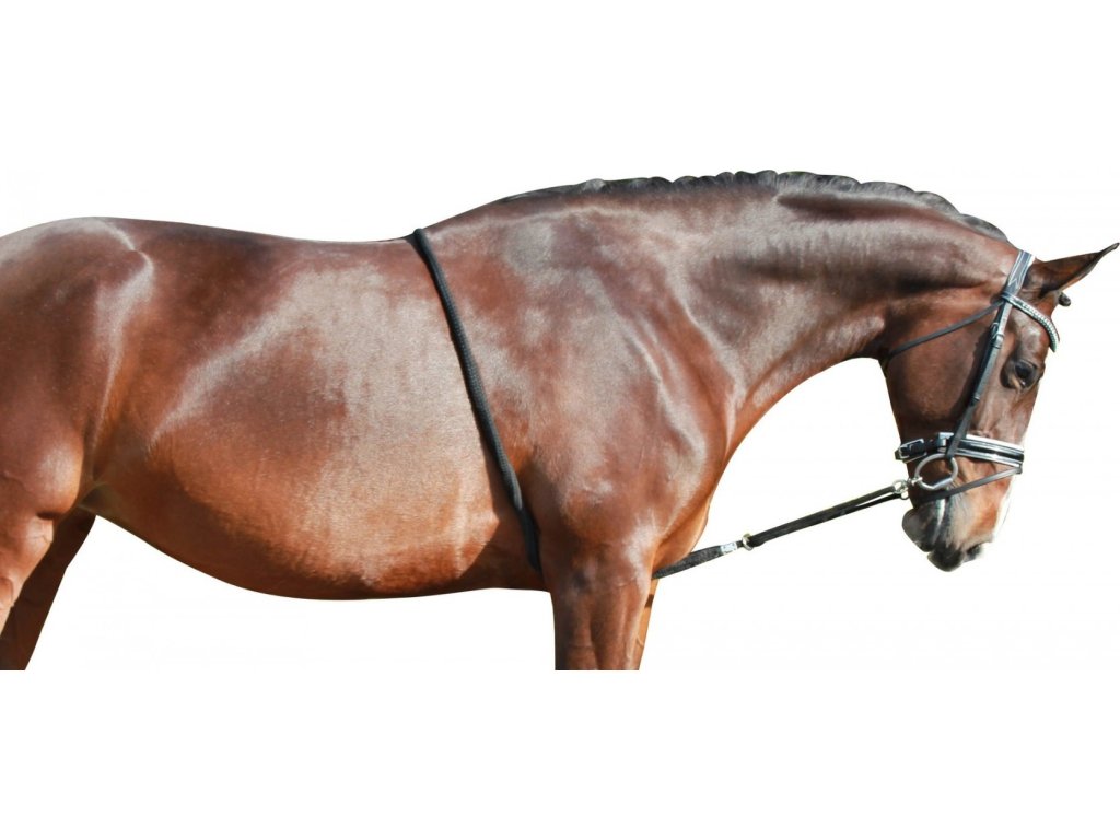 Idealna pomoc podczas lonżowania. Uprząż pomaga koniowi się zrelaksować oraz zachęca do używania mięśni grzbietu i tylnych nóg. Długość regulowana w zależności od potrzeb. Może być używana bez siodła lub podkładki.