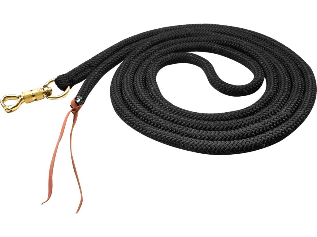 Mocna długa lina do prowadzenia odpowiednia do pracy z ziemi. Wyposażona w mocny karabińczyk obrotowy i skórzane zakończenie. Długość liny do prowadzenia: 7 m, grubość: 1,5 cm.