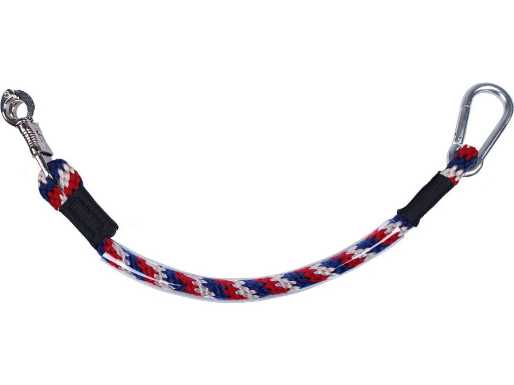 Uwiąz, którego można użyć do szybkiego i bezpiecznego uwiązania konia, zarówno w stajni, jak i w przyczepie. Zawiera klasyczny karabińczyk, karabińczyk bezpieczny i linę pokrytą plastikową osłoną.