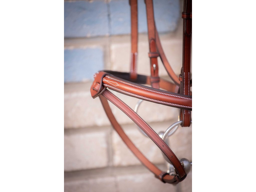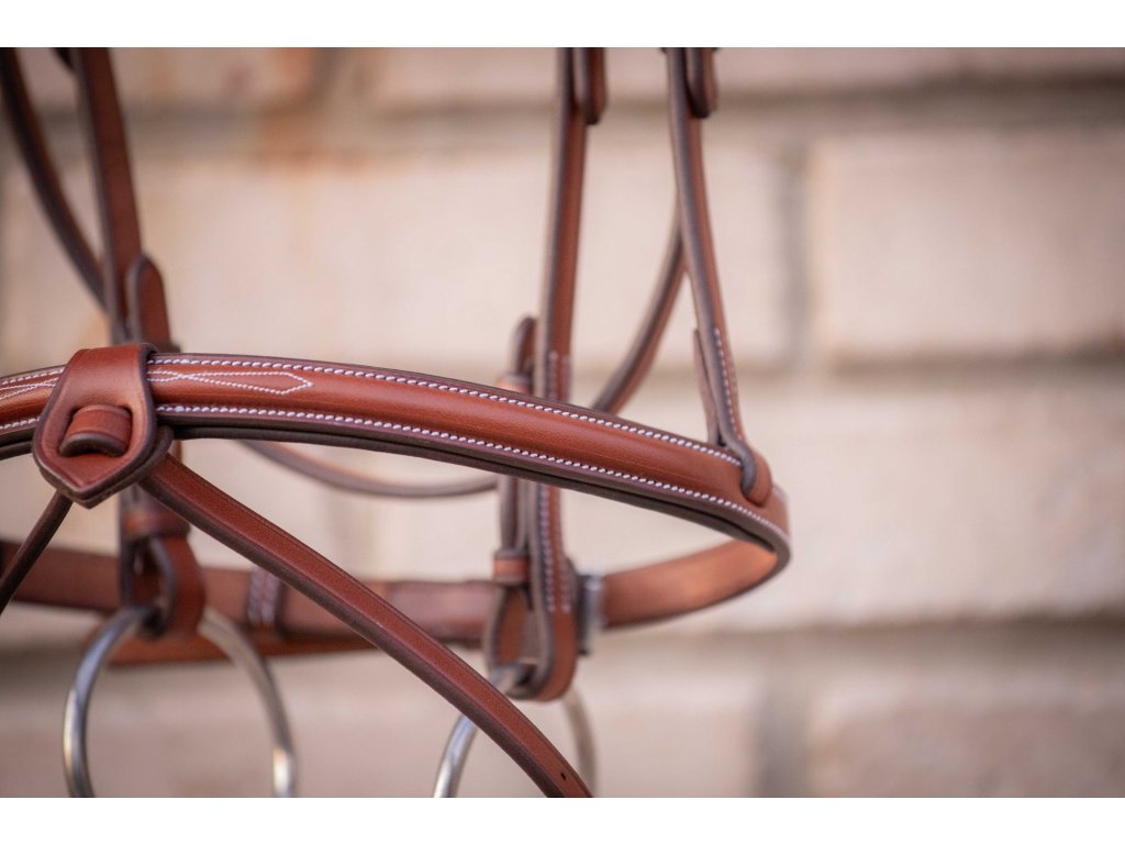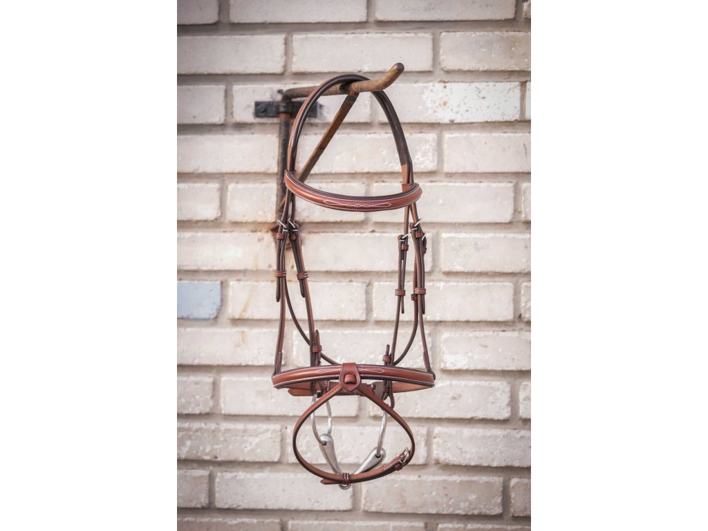 Eleganckie ogłowie Hunter US wykonane z wyjątkowo wysokiej jakości skóry z miękkim wypełnieniem. Wszystkie jego części są precyzyjnie wykonane i ozdobione kremowymi przeszyciami. pasek potyliczny ma nieco anatomiczny kształt, a łączony nachrapnik jest wyposażony w wyjmowaną część środkową. Idealne zarówno do codziennej jazdy, jak i zawodów.