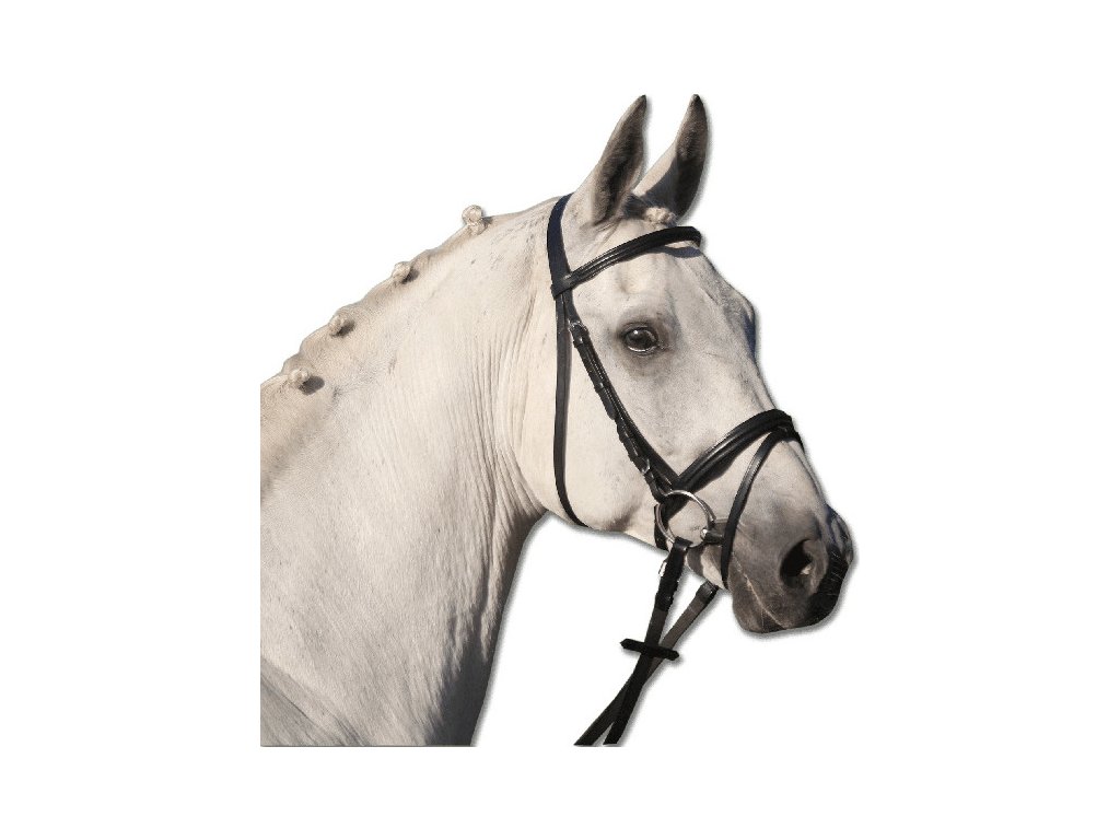 Skórzane ogłowie z nachrapnikiem kombinowanym angielskim. Lekko wyściełany pasek potyliczny i nachrapnik. Liniowe podgardle i pasek potyliczny, niklowane żelazne połączenie. Szerokość wodzy dla MSH i SH 16 mm, dla pozostałych 19 mm. Świetny stosunek jakości do ceny.