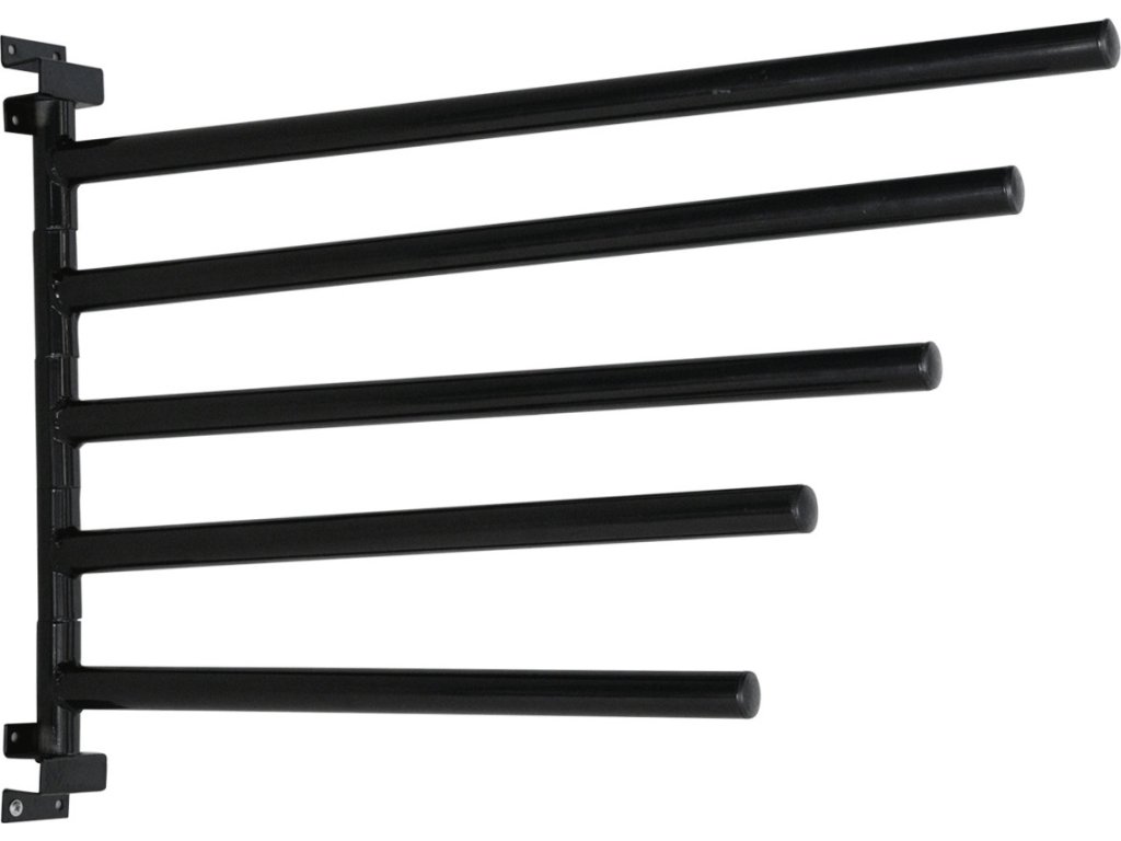 Praktyczny wieszak na czapraki. Wieszak posiada pięć obrotowych ramion, jest oszczędny i przejrzysty. Łatwa instalacja. Musi być przykręcony do ściany.