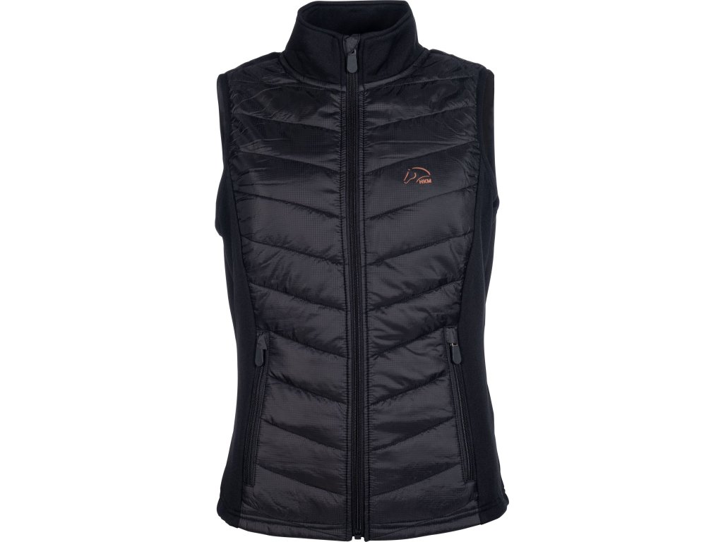Pikowana kamizelka jeździecka z wyższym kołnierzem. Kamizelka jest ocieplana, dzięki czemu nadaje się na chłodniejszą pogodę. Wyposażona w elastyczny materiał po bokach, który zapewnia maksymalną swobodę ruchów dla jeźdźca. Posiada 2 przednie kieszenie zapinane na zamek. Można suszyć w suszarce bębnowej. Nadają się do noszenia w stajni i na co dzień.