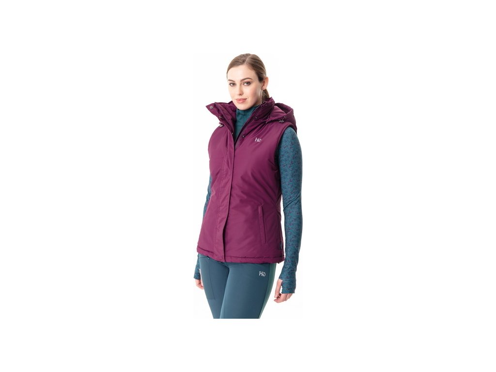 Sportowa kamizelka damska o modnym kroju, będąca gorącym nowym produktem od Horseware. Kamizelka jest wykonana w 100% z materiału poliestrowego pochodzącego z recyklingu. Materiał jest wysoce oddychający i dzięki klejonym szwom jest całkowicie wodoodporny, zapewniając słup wody o wysokości 3000 mm. Izolacja z wykorzystaniem materiału Repreve, który również składa się w 100% z poliestru pochodzącego z recyklingu plastikowych butelek. Zapięcie na dwukierunkowy wodoodporny zamek błyskawiczny, który jest wyposażony w osłonę podbródka na górze. Wyposażona w praktyczne kieszenie wyściełane polarem i zapinane na wodoodporne zamki błyskawiczne z przodu. Także z odpinanym kapturem i wysokim, wygodnym kołnierzem. Szerokość talii można regulować według indywidualnych potrzeb za pomocą wewnętrznej elastycznej taśmy. Ozdobiona logo Horseware. Można prać w pralce.