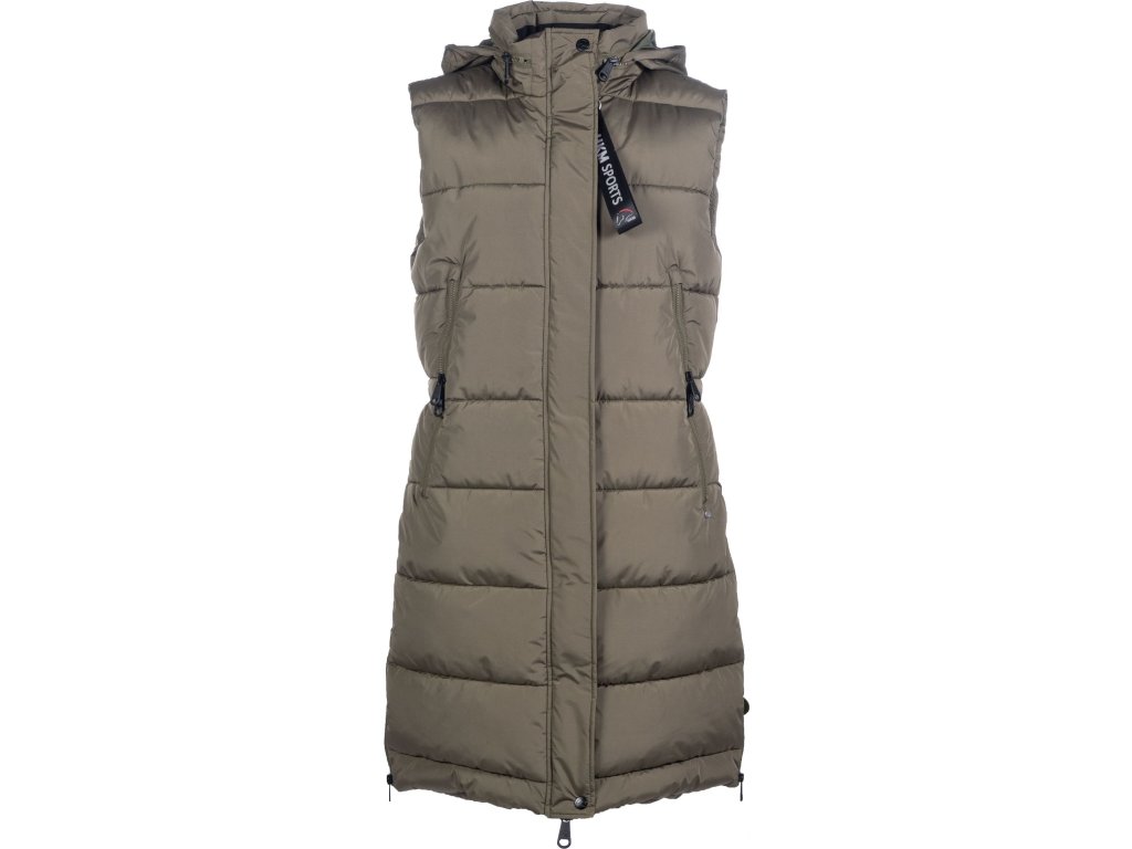 Wodoodporna pikowana kamizelka z miękkim bawełnianym wypełnieniem, która zapewnia ciepło w chłodne dni. Wyposażona w wewnętrzną kieszeń i dwie boczne kieszenie z dwukierunkowym zamkiem błyskawicznym i ciepłą wewnętrzną podszewką. Wysoki kołnierz jest wyściełany ciepłym polarem i ma ukryty zapinany na zamek kaptur. Długie rozcięcia po bokach zapewniają maksymalny komfort podczas jazdy. Odblaskowy wzór na plecach i rozcięciach zwiększa bezpieczeństwo. Kamizelka jest wyposażona w dwukierunkowy zamek błyskawiczny. Odpinany karabińczyk może być używany do kluczy lub innych drobnych przedmiotów. Można ją prać w pralce w temperaturze 30 stopni i suszyć w suszarce bębnowej. Nie zaleca się prasowania. Długość wynosi 98 cm, a długość kieszeni 29 cm. Dostępna w trzech kolorach i rozmiarach XS - XXL.
