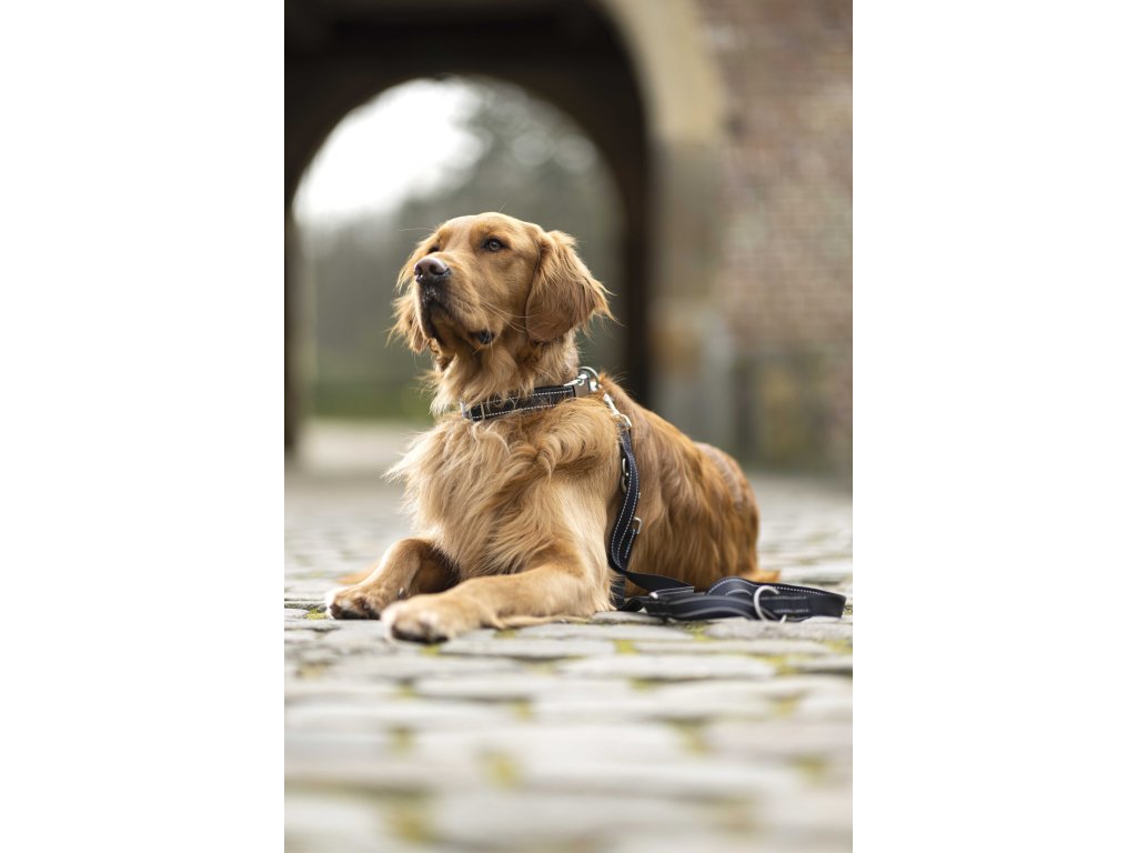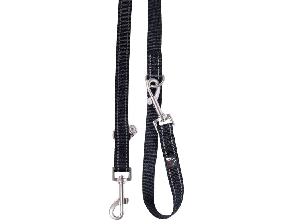 Smycz treningowa z wysokiej jakości nylonu HKM. Nadaje się dla psów wszystkich ras i rozmiarów. Długość smyczy można zmieniać dzięki trzem pierścieniom wszytym w nią. Karabińczyki i kółka są srebrne. Elementy odblaskowe zapewniają większe bezpieczeństwo podczas spacerów po zmroku. Smycz jest dostępna w różnych szerokościach: rozmiar S: 1 cm/ M: 1,9 cm/ L: 2,5 cm.