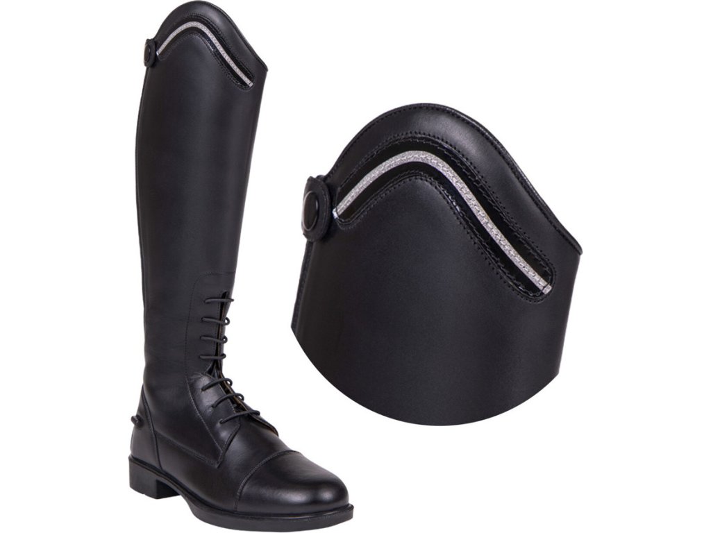 Wymienne części do oficerek Jaimy marki QHP. Ozdobione subtelnym brokatem o uroczym połysku. Można je zapiąć na rzep. Dostarczane w parach.