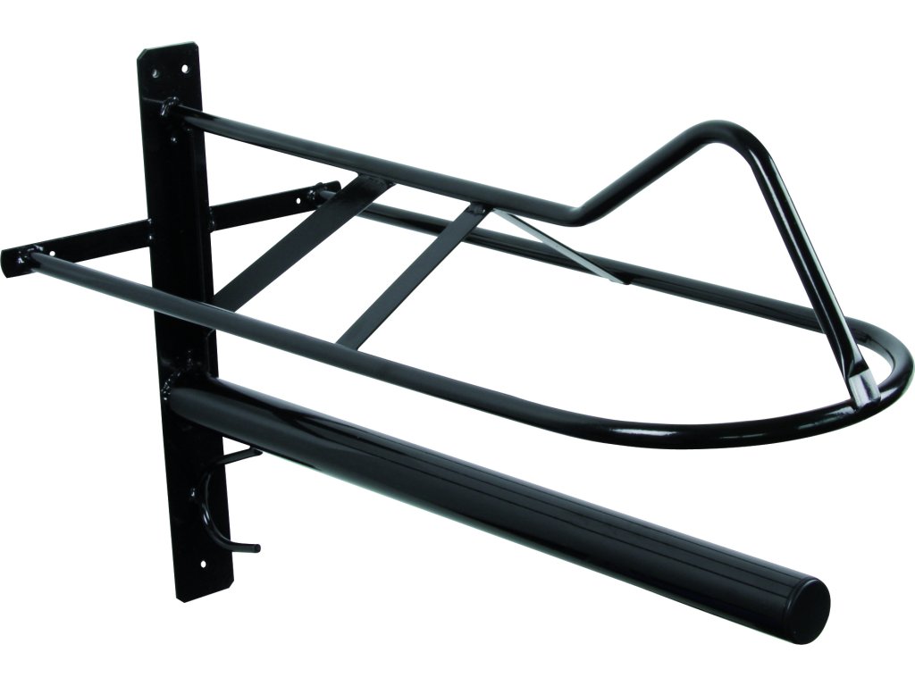 Wyjątkowo praktyczny uchwyt na siodło i czaprak, wraz z hakiem na ogłowie. Górna część przeznaczona jest na siodło, a dolna na czaprak. Zapewnia dobrą wentylację czapraka, a siodło nie jest obciążone wilgocią. Nadaje się również do siodeł westernowych.Wymiary 28 x 40 c 57 cm.