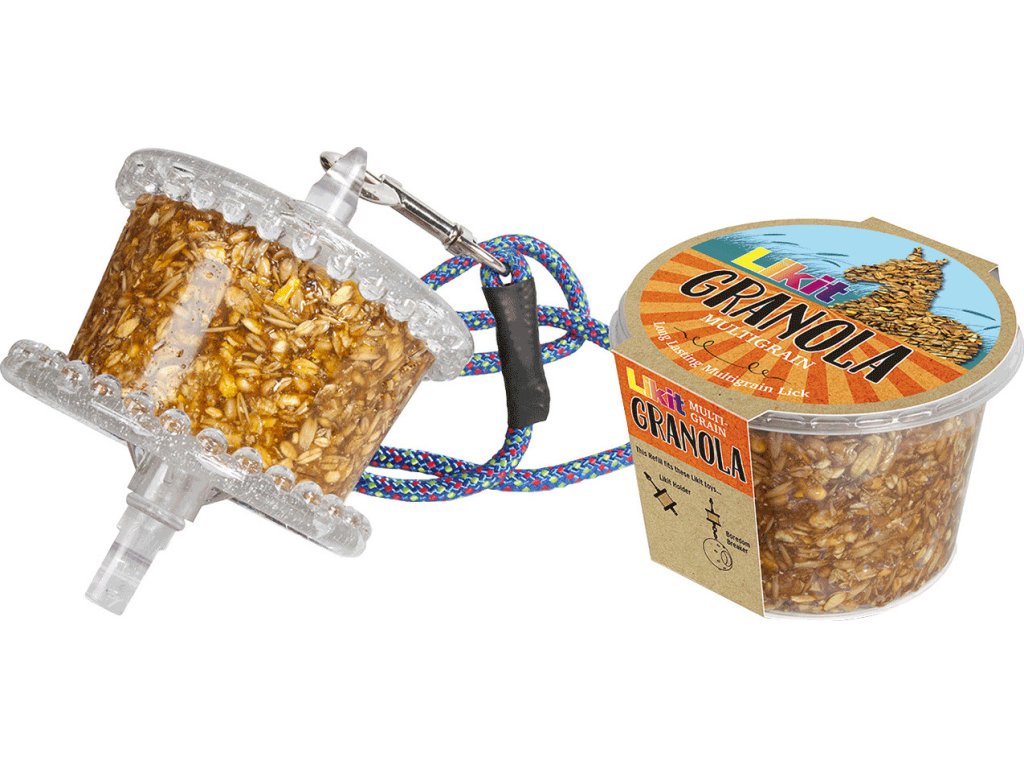 Wkład do lizawki Likit 550 g. Wykonany z mieszanki wielu smacznych zbóż, takich jak: pszenica, jęczmień i owies. Zawiera również kukurydzę. Idealny do zabawiania lub redukcji stresu u koni.