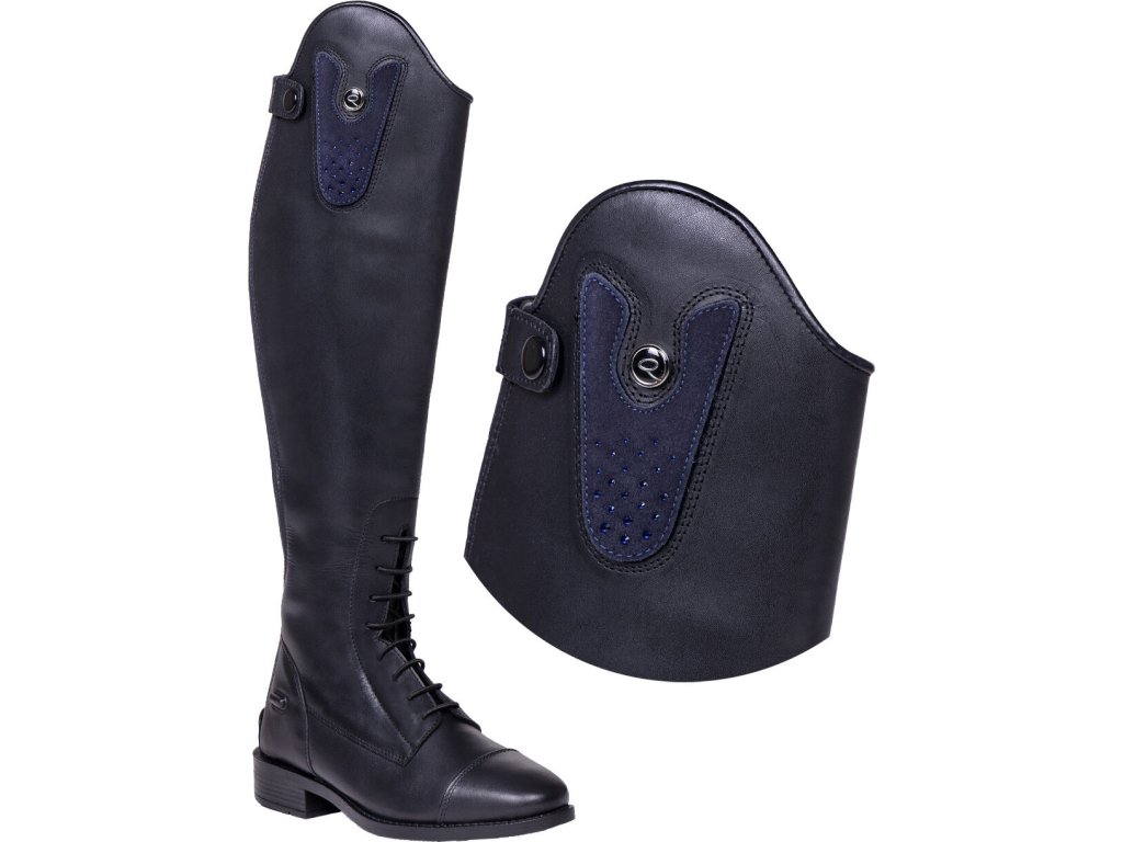 Wymienne części do wysokich butów jeździeckich Sasha firmy QHP. Zamszowy wygląd z błyszczącymi zdobieniami z dżetów. Można je zapiąć na rzep. Dostarczane w parach.