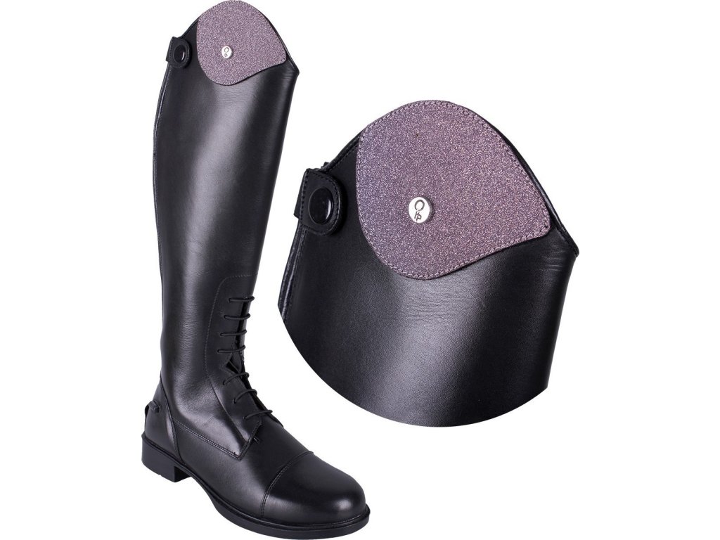Wymienne części do wysokich butów jeździeckich Romy marki QHP. Ozdobione brokatem, aby but lśnił stylowo. Można je zapiąć na rzep. Dostarczane w parach.