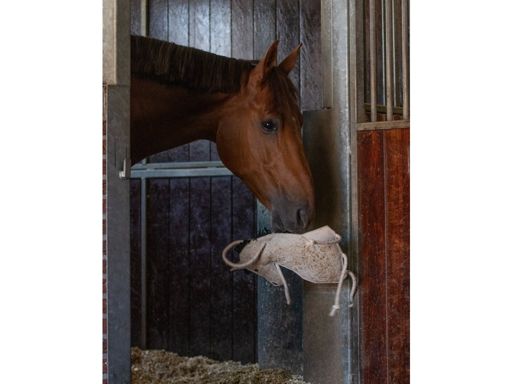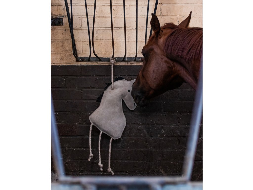 Wysokiej jakości zabawka dla koni w kształcie konia, która zapobiega nudzie w stajni. Wysokość wynosi 40 cm. Zabawka jest wykonana z zamszu i bardzo wytrzymałego materiału. Można ją również zawiesić na linie. Dostępna również w kształcie jednorożca i marchewki.
