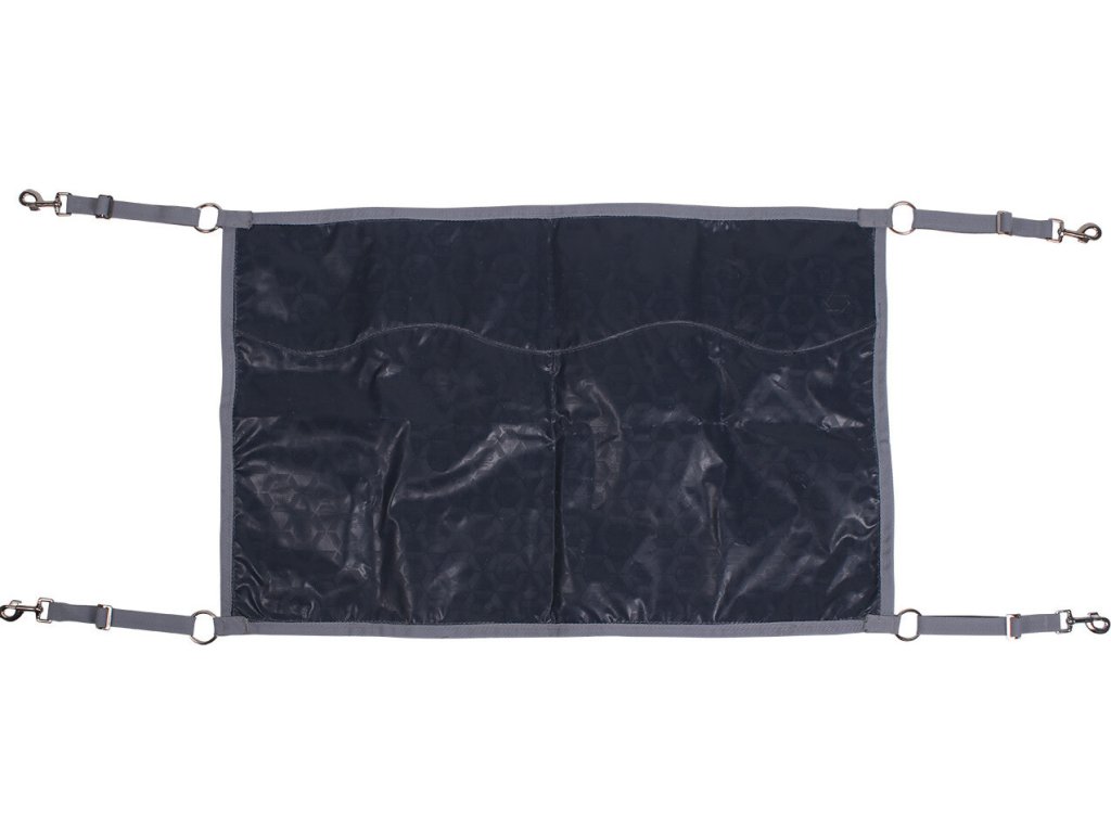 Zasłona stajenna, którą można łatwo przymocować za pomocą czterech pasków. Paski są regulowane i wyposażone w karabińczyk. Odpowiednia do każdej stajni lub na zawody. Ozdobiona gumowym logo QHP.