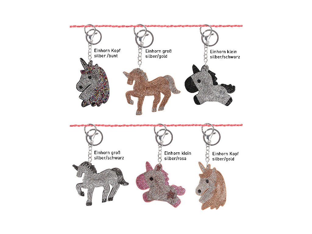 Błyszcząca i stylowa zawieszka w kształcie jednorożca, którą możesz przypiąć do torebki lub kluczy. Ozdobiona cyrkoniami. Dostępna w kilku kolorach i rozmiarach.