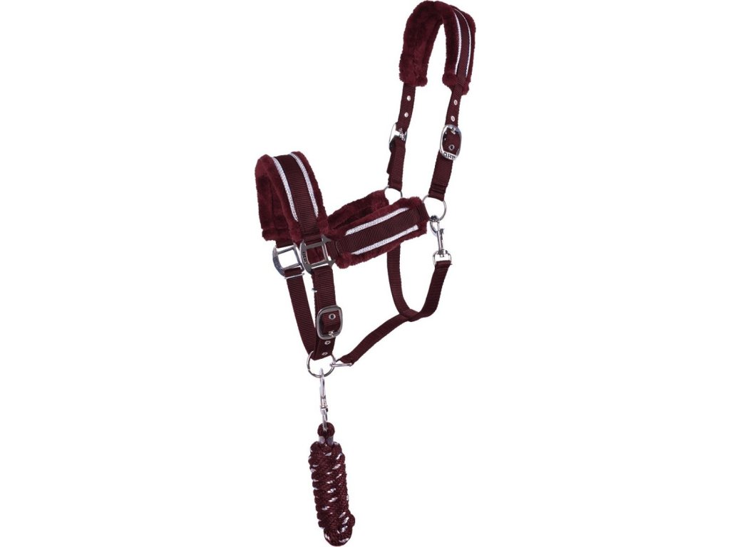 Zestaw kantar i uwiąz Dolci QHP, bordowy/srebrny