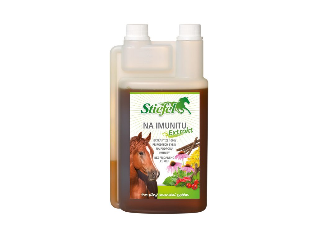 Koncentrat ziołowy stworzony z czysto naturalnych składników dla silnego wsparcia odporności. Ziołowy ekstrakt na odporność marki Stiefel wspomaga mechanizmy obronne organizmu i wzmacnia układ odpornościowy konia. Z echinaceą, nawłocią, żeń-szeniem syberyjskim, owocami róży, lukrecją i miętą.